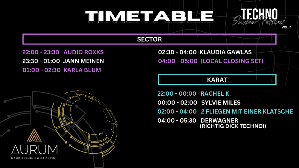 Das Aurum Aurich begrüßt Euch zu einer Nacht voller Electro & Techno Beats 🎛️ auf mehreren Erlebnisbereichen.